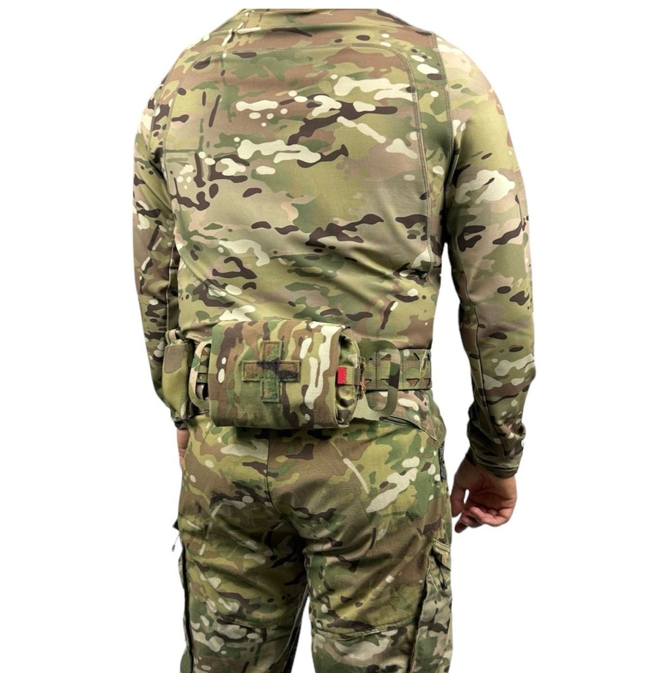 The tubular holster is made from a flexible Multicam fabric for easy extraction of the inner IFAK pouch but has been reinforced with a strong laminate to ensure the pouch does not bounce when the user is moving or running.